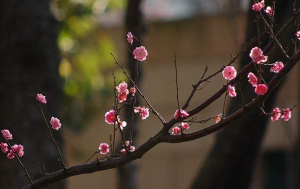 蠟梅的枝條一般都是比較直的;而紅梅有直枝也有垂枝。